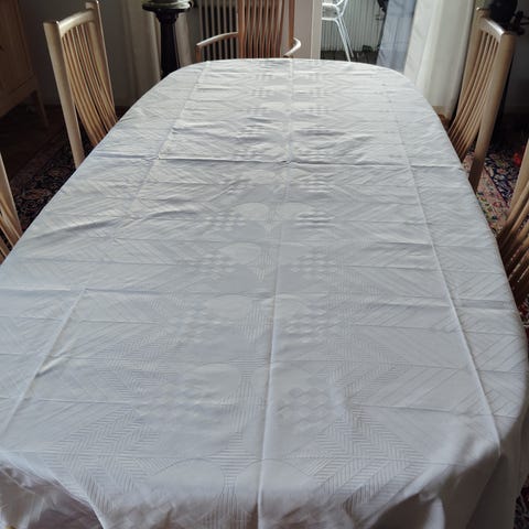 fin ny juledag hvid længde 240 cm , bredde 140 cm med hjerter sælges , aldrig brugt kun vasket , se billeder