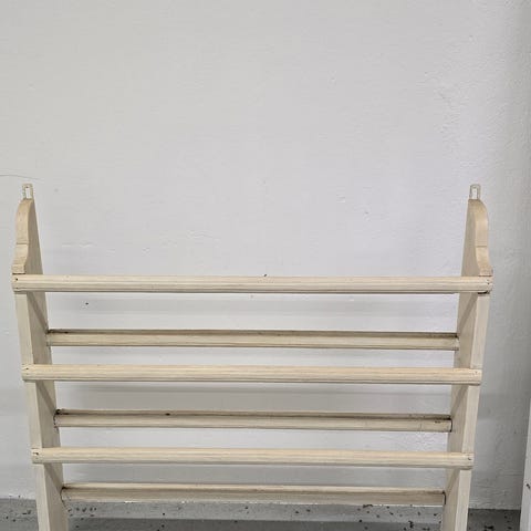 Den er 84.5 bred 93cm høj og dybden er forneden 16cm og lidt efter 9.5cm