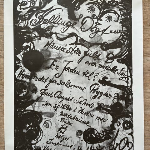 Masser af patina. Vandmærke, lille hul. Men helt klart en del af charmen ved en sådan gammel plakat. Se billeder.