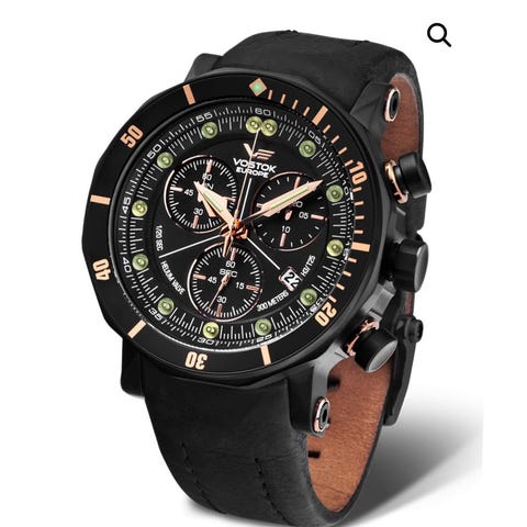 Dykkerur, Vostock, Lunokhod 2. Chronograph. Super lækkert og stort dykkerur. Uret er lavet i begrænset antal og er nr. 574 ud af 3000. Der medfølger læderrem og værktøj til at skifte det med. Uret er i ekstrem god stand og ikke brugt særlig meget, ingen ridser eller ligende hverken i urkassen eller glas. Uret er i mat sort og rosegold. Uret kommer som et komplet sæt, har haft det fra nyt. Oplysninger ses på sidste billede.