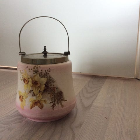 Kiksespand, Porcelæn, Flot håndmalet kiksespand, er intakt og der er stempler i låget.