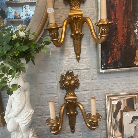 2 fakler, guldmetal, Empirestil. H. 55 cm. Monteret med pærer. 6 stk. i alt, sælges parvis.