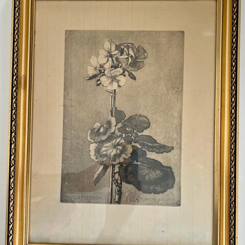 Tryk, Oluf Jensen, motiv: Julestjerne, b: 40 h: 50, - billedet kan sendes efter aftale eller ses i Bornholms kunsthandel