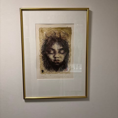 Tryk på lærred, Kurt Trampedach, b: 60 h: 90, 2 styk ikoniske Kurt Trampedach lærredstryk monteret på sølvramme.