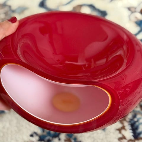 Glas, Sulo Gronberg Fad, Oy Kumela, Finsk ametystfarvet glas fad/skål l.34 cm. Signeret under bund. Fin stand.