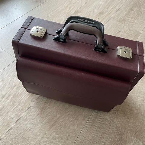 Anden taske, Vejle Lædervarefabrik, super flot "lægetaske" i sort kernelæder med messingbeslag, helt som ny, nypris 4000,-