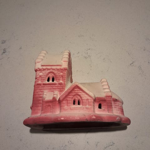 Charmerende Kirke med lys, ledning og alm pære, højde 28 cm inkl kors på tag, bredde 20 cm, dybde 16,5 cm