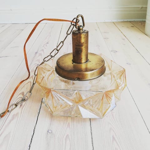 Lampen har et lille afslag på en af lamellerne (Se sidste foto) Afslaget er 1 cm langt.