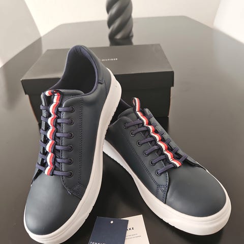 Sneakers, str. 37, Hvidt kalvelæder, med glimmer gummi sål, Tommy Hilfiger