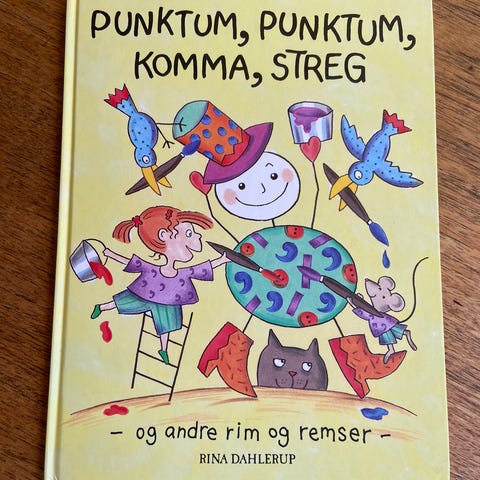 Punktum, punktum, komma, streg , Rina Dahlerup f.1938, - og andre rim og remser. Klematis 2005. 1.oplag, illustreret i farver af Rina Dahlerup, hardback, næsten som ny. Sender gerne