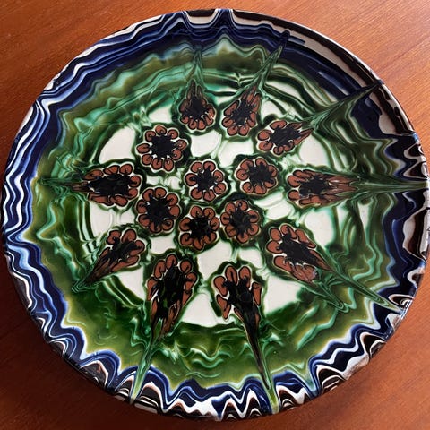 Stort keramik fad unika, Gerhard Schwarz, motiv: “To gamle mænd”