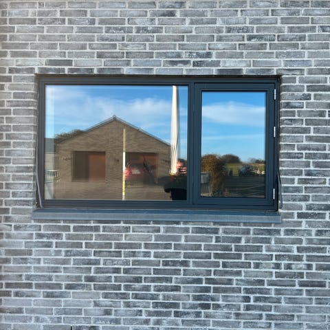 Sidehængt, alu, b: 70 h: 140, 2 stk. Ens med aftagelig materet film på 2/3 af vinduet