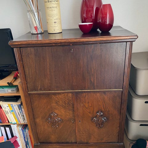 Andet, Træ, Barskab af bornholmerur, b: 38 l: 190, Ombygget barskab med plads til flasker og glas