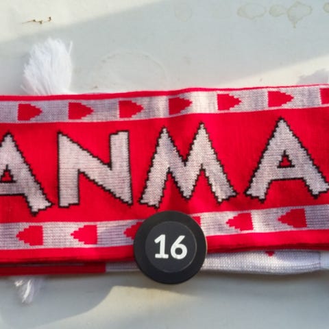 Andet, Halstørklæde, Spanien-Danmark klæde købt under landskamp på Santiago Bernabeau