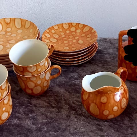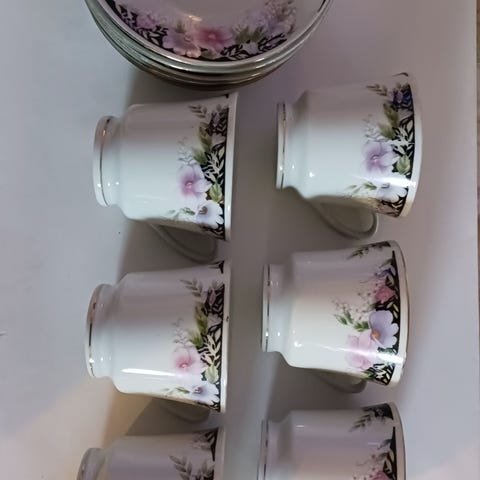 Porcelæn, Kaffe sæt, Sødt lille mokka sæt 9 kopper undertallerken sukker skål kaffekande