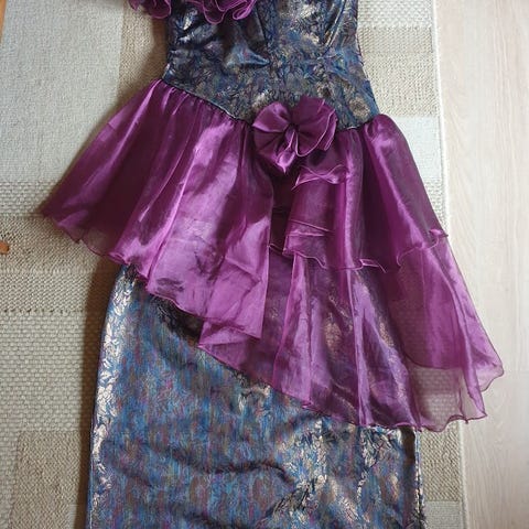 Gallakjole, Lilly, str. M, Cyklame// blomme, Næsten som ny, Flot, mørk lilla/ cyklame farvet gallakjole med stropper. Der er bærestykke med draperinger. Der er simili sten på bærestykke og stropper. Kjolen falder let ned med fine folder. Der er foer i kjolen. Kjolen flæser forneden rundt. Der følger tørklæde med. Den falder så flot.