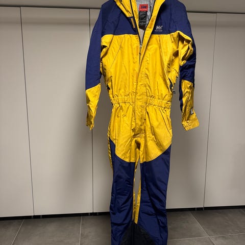 Foret regndragt, som er vind- og vandtæt. Dragten er svejset indvendig på alle syningerne med et ekstra lag nylon, så den er helt tæt. Der er isat elastik i livet, så den sidder perfekt til kroppen.