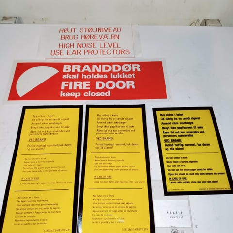 Skilte, Thomas værelse, Et lille skilt der er 18x8,5 cm stort. Teksten Thomas room - enter at own risk. Thomas værelse.