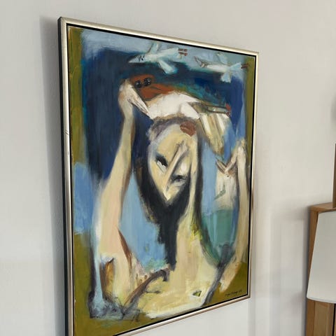 Oliemaleri, Inge Hørup , motiv: Abstrakt, stil: Abstrakt, b: 45 h: 63, Kvittering haves