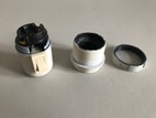 Lampefatning, Le Klint, Fatning Le Klint lampe, hvid, retro original, med afbryder og omløbsring. Højde 8cm omløb 40mm.