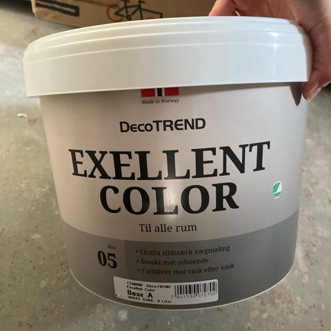 Maling, Jotun, Gul og guld glimmer, Den er lidt under halv fuld og med lidt guld glimmer til at komme i.