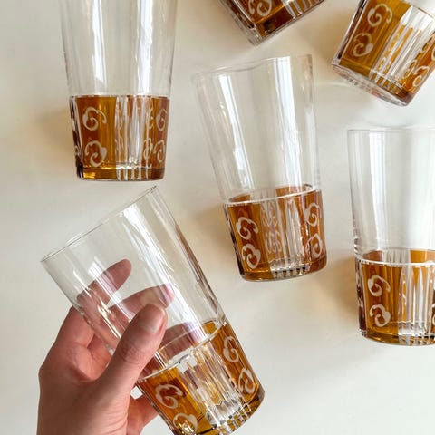 Glas, Krystal bowle med 12 glas, Komplet stand