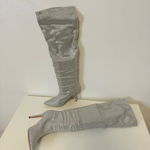 Støvler, str. 36, ALDO, Sølv, Næsten som ny, Fedeste støvler fra ALDO i str 36. Brugt til en enkelt fest. De sætter sig så pænt og man kan både trække dem op eller krølle dem lidt ned. Der mangler lidt sten, hvilket de har gjort fra start, men ellers er de i fin stand. Nypris var 1800kr.
