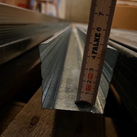 MR-stolpe til gipsindervægge, 24 stk. 70 mm x 2500 mm. 50 kr./stk