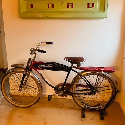 Kør til bageren eller stranden på denne orange retro cruiser med 36" hjul og 30" styr. Fed og speciel retro cykel som nok skal give opmærksomhed.