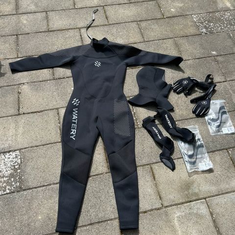 Våddragt og sko, Konfidence, Nye våddragter fra Konfidence (aldrig brugt) strl 6-7 år samt sko (2 i XL,1 i L og 1 i XS) sælges samlet for 150kr. Hvis du kun er interesseret i nogle af tingene så skriv ;-)