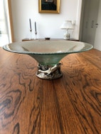 Glas, Opsats, farvet glas, Fin opsats i grønligt glas med delfiner på foden.