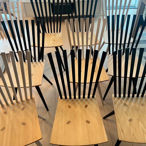Jeg sælger denne smukke og tidløse MIKADO-stol designet af Foersom & Hiort-Lorenzen for FDB Møbler. Stolen er inspireret af den ikoniske pindestol J46, som blev tegnet af Poul M. Volther i 1946 og cementerede FDB Møblers position inden for nordisk design.