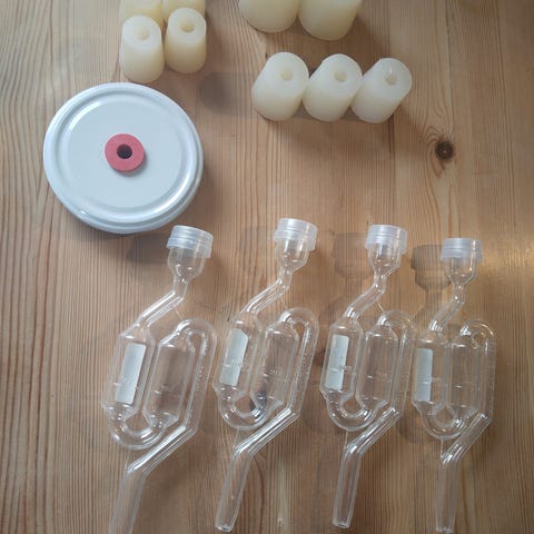 Ved samlet handel kan der medfølge divers fittings, flasker og kasser mv.