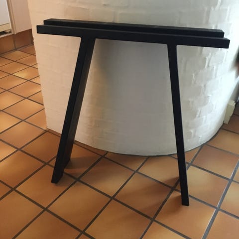 2 Stk. Sorte Bordbukke / Bordben. Står som nye, sort pulverlakering uden afslag. Brugt meget lidt.
