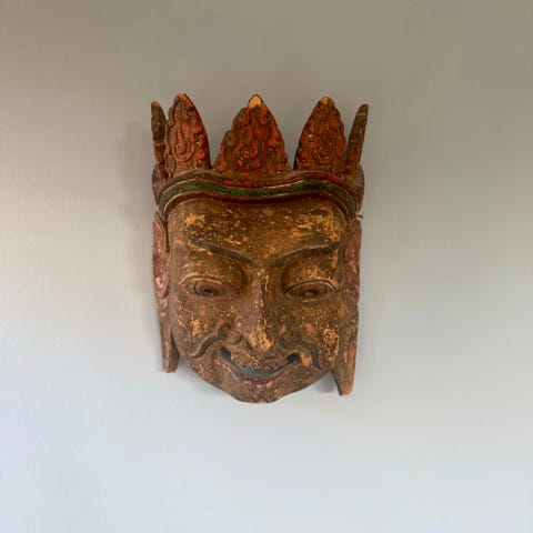 Særdeles skøn sjælden antik - vintage Kinesisk håndlavet maske i træ og belagt med ukendt materiale