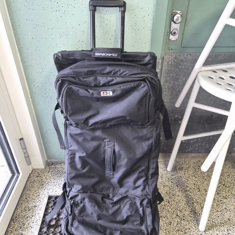 Trolley, Dakine, b: 38 l: 30 h: 73, Super flot Dakine rejse trolley. Den er brugt stof side er som ny udenpå, bagside bærer præg af håndtering i lufthavn, men har mange gode rejser i sig endnu. Slid på hjul også. Alle lynlåse virker som de skal. Der er indbygget toilettaske indrettet med 3 separate rum, som kan udvides i det store rum, så man kan have sovepose liggeunderlag i rummet i længden. Nypris er 1999.kr