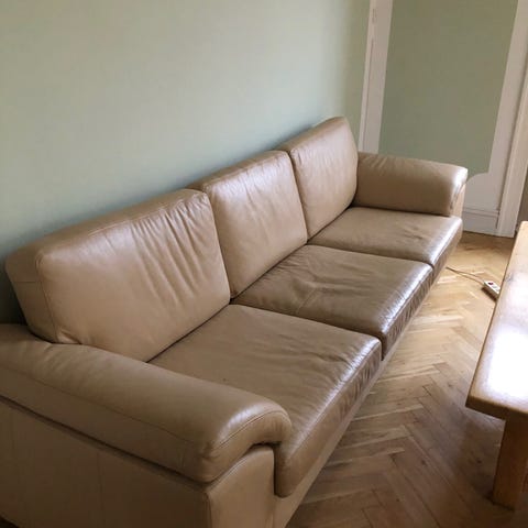 Sofa, læder, 3 pers., Dejlig 3-personers lædersofa - lyst træ. God kvalitet.