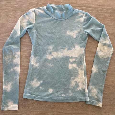 Top, Lyseblå top, Fragment, str. 158, Fragment lyseblå top med rib i stof og lille halskant i halsen se foto