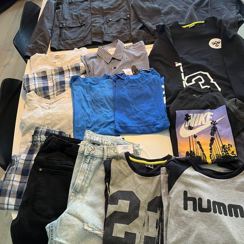 Blandet tøj, T-shirt, sweater, bukser, shorts, Dickies, Hound, Empyre, Hendrix, str. 164, T-shirts og shorts er størrelse Small og X-Small. Sweater er xx-Small.