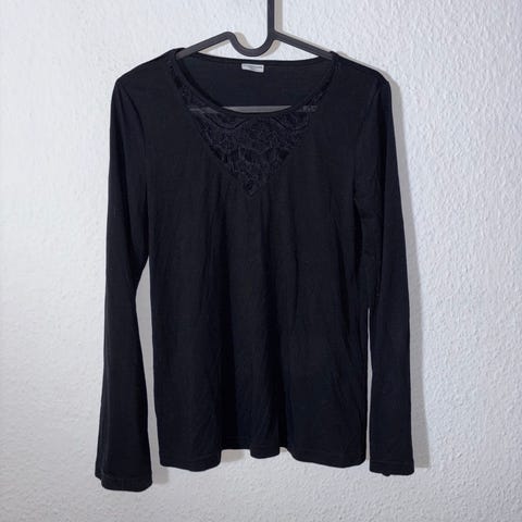 Top, Sort/hvid mønstret med lyserød kant, str. 38, sælges for 50 kr.