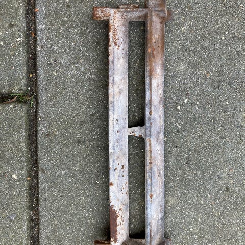 Andet, Forsats/gnist- og askefanger i messing på tre kugleben. Længde. 47 cm. Dybde 21 cm. Løse kugleben