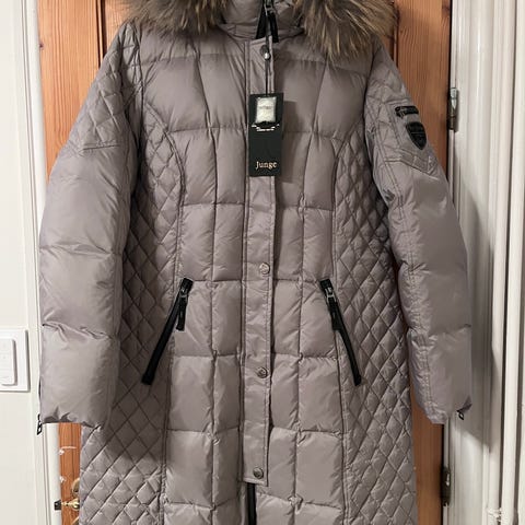 Frakke, str. 36, By Junge, Sort, Dun, Næsten som ny, Efterårs/vinterfrakke, som er fejlkøbt som desværre ikke passer mig alligevel. Mærket er Junge som er dejligt dansk design , som laver luksusjakker til damer. Self med ægte dun!