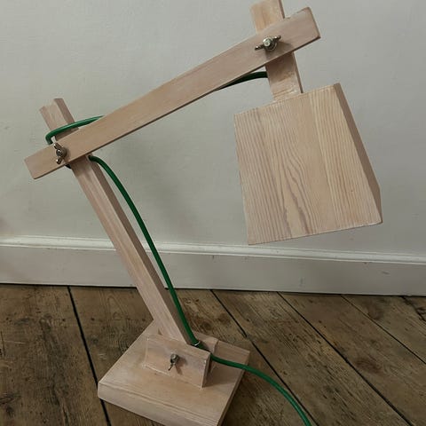 Anden bordlampe, Muuto, Fin lille bordlampe, her brugt på natbord.