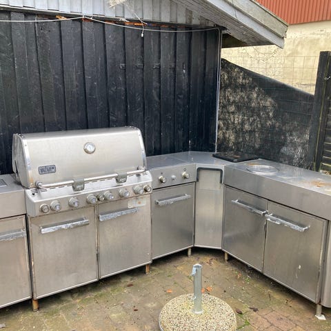Udekøkken, Fuldmuret, fuldmuret grill m. 3 hylder og tilbehør. Skal selv fjernes og fragtes af køber