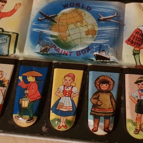 Andre samleobjekter, Maling, 2 søde små dåser maling mrk Mercandia . Ja navnkundige Per Henriksen. Er produceret hos SIE Lak og farvefabrik Krimsvej Amager.