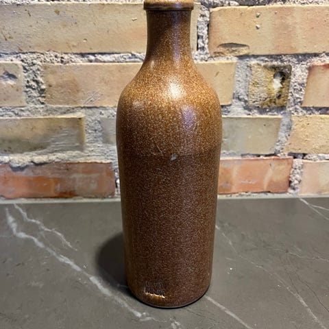 Patent flaske, MKM keramik, motiv: Dram flaske, Flot brun keramik flaske m. patentprop fra MKM keramik. 0.5 L. 22 cm høj. Kr 60.