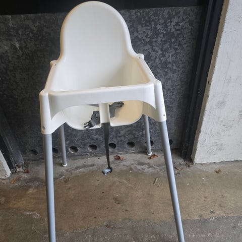 Børnestol, Gammel barnestol med stel af stål og træ-armlæn/sæde. Meget velholdt, fine detaljer. sædehøjde ca. 33 cm. Lidt patina, se billeder. Kun afhentning.