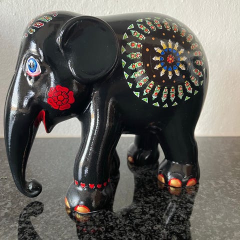 Andre samleobjekter, Elephant Parade, Ville De Calais, Elephant Parade. Nummereret 177/1499A. Tror at den er fra 2015 udstillingen. Måler ca. 11 cm. i længden. Ca. 10 cm. i højden på det højeste sted. I fin stand, få brugsspor. Ingen skår eller afslag.