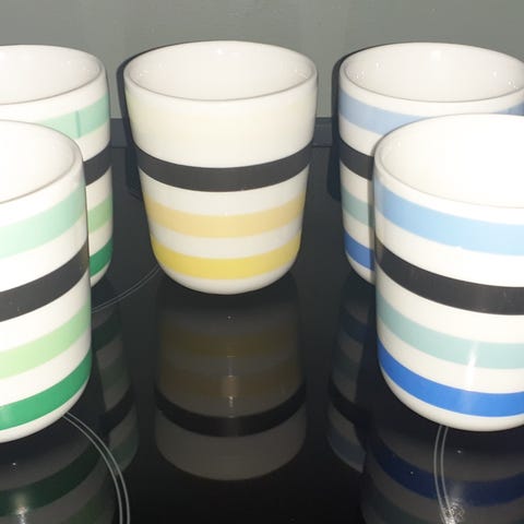 Porcelæn, Termokrus, 4 stk termokrus m dekorationer. Kan sendes.