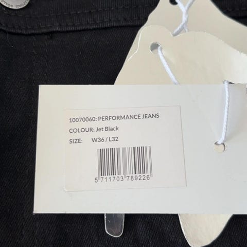 Der står str. W38-L32 i : Indvendig ben længde ca. 78 cm. Livvidde ca. 2 x 50-53 cm.